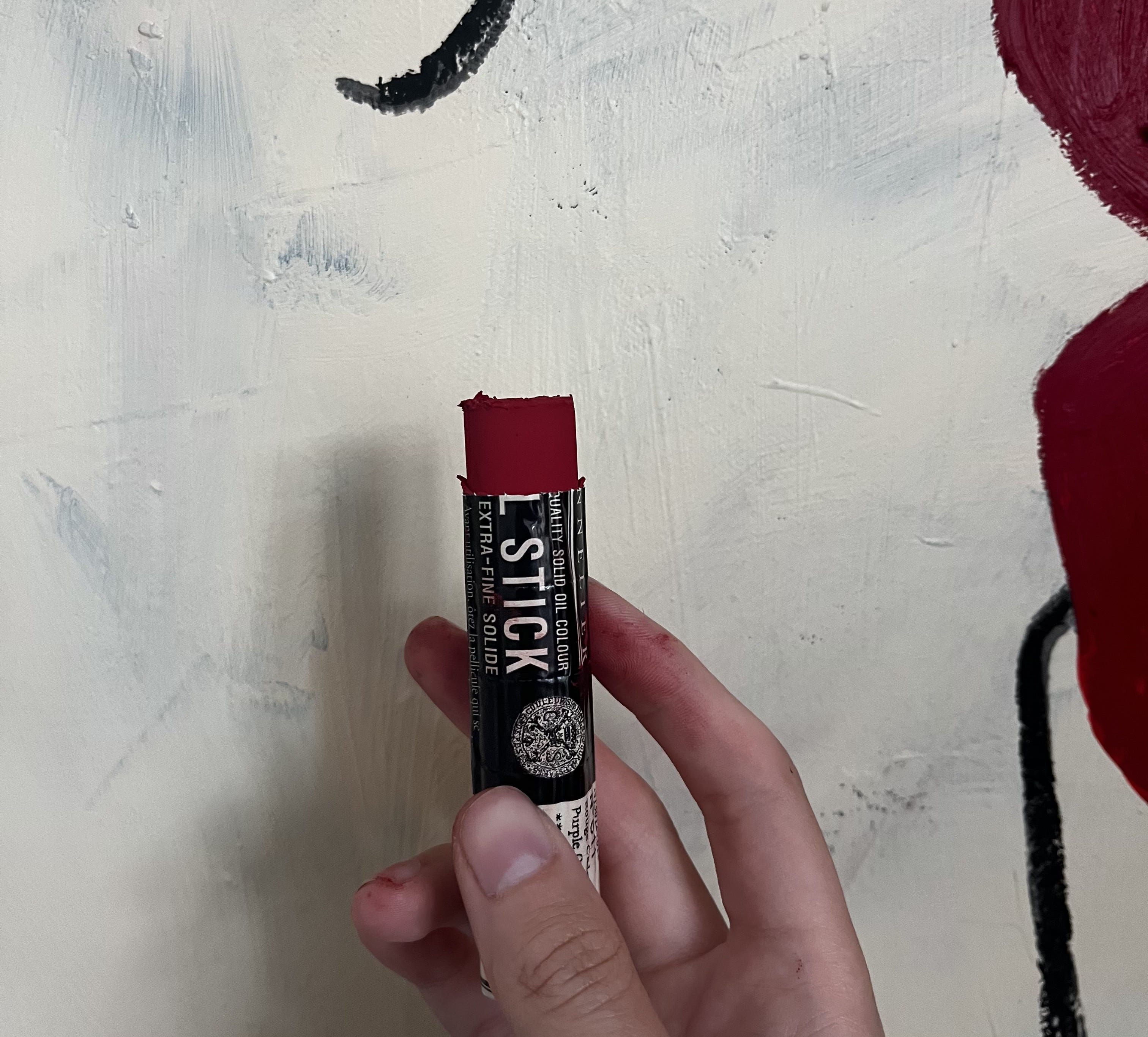 The first time I pressed this intimidating medium to canvas, it was a red oil pastel so rich it felt alive, more like a wound that was being cracked open. A memory being created. It reminded me of writing with lipstick on a mirror: urgent, intimate, impulsive. It wasn’t what I expected. I had always understood oil to be the most sophisticated medium, pristine, elevated, perfect. But this that I was experiencing was something else entirely. It was rebellion, very much like the rebellion I was enacting and using as a way to avoiding interacting with this medium in the first place. There was no clean line, no control. Just pressure and pigment. Just me and the canvas and this thick-bodied color that refused to be anything but itself.