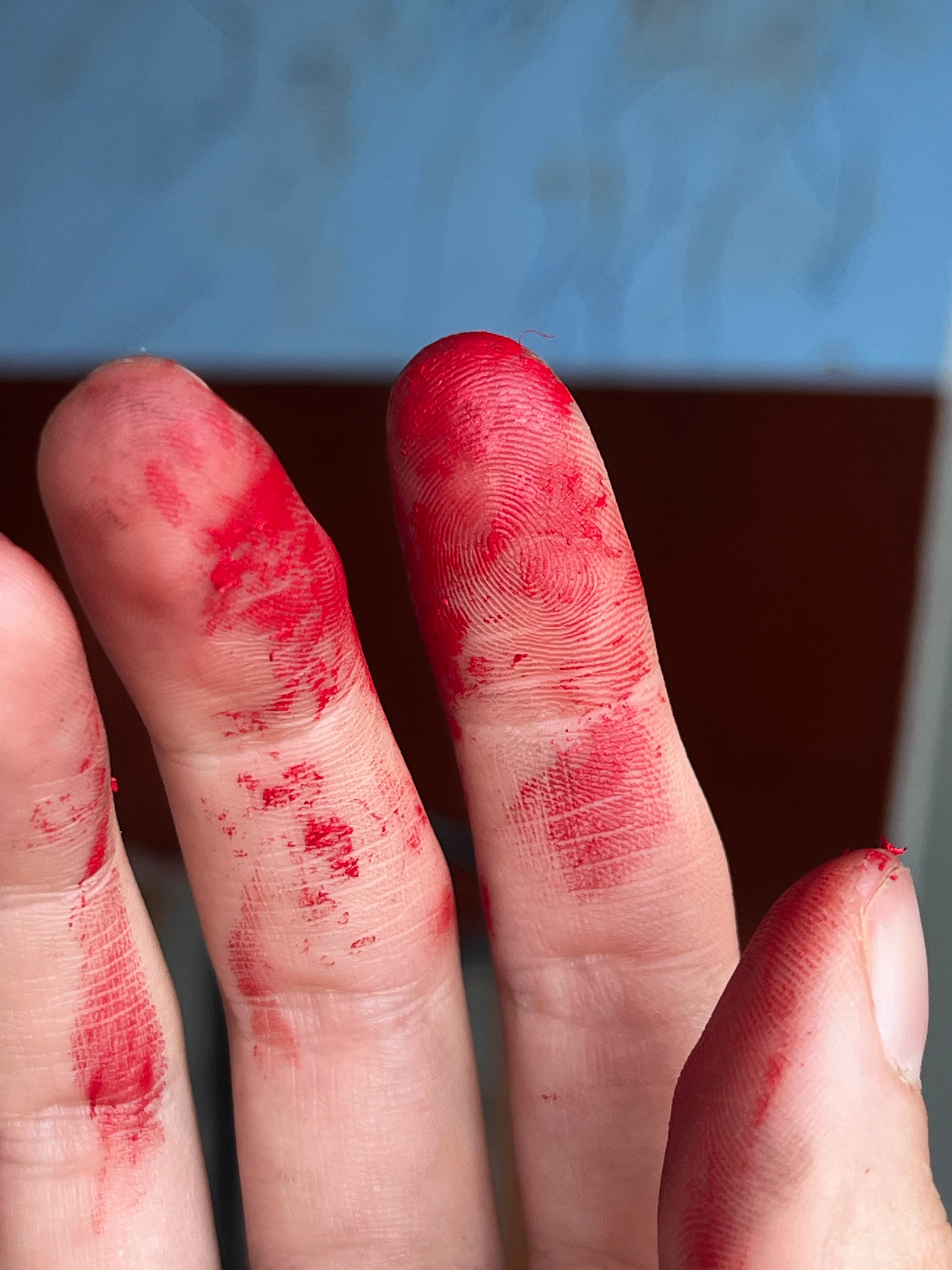 Even after I wash my hands, the color stays beneath my nails. Oil pastel refuses to leave quietly. It lingers like a scent, like a bruise, like a reminder.